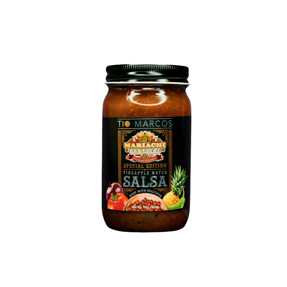 Tio Marcos brings the heat and sweetness of Arizona to your table with this bold Pineapple Hatch Chiltepin Salsa. Hatch chiles deliver authentic southwestern flavor, while wild chiltepin peppers add a fiery kick that builds with every bite. Tropical pineapple notes through the heat with bright, natural sweetness, creating a perfectly balanced salsa that transforms tacos, grilled meats, and appetizers. Handcrafted with Arizona pride, this versatile condiment elevates your meals from ordinary to unforgettable. Experience the perfect marriage of regional heat and tropical flavor.